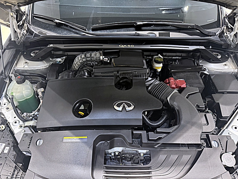 此外,QX50全車廣泛採用UHS(Ultra High Strength)高強度鋼材作為車體結構,在A柱結構使用1.2 GPa極高張力鋼材來保護乘客安全,而在QX50的車側及引擎基座,亦首次運用全新SHF(Super High Formability) 980 MPa超高延展高強度鋼材,讓QX50的車體在發生碰撞時,能更有效地吸收撞擊力道,確保車內乘客安全。相較前代QX50,新車的車身抗扭轉剛度提高了23%,提升被動安全的同時,高剛性車身同步減少車身震動、降低車內噪音,更有效地提升行車舒適性