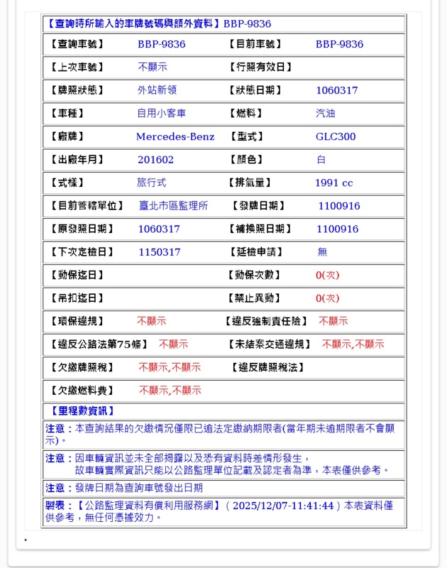 2016年2月出廠 2017年3月17日領牌 實車里程:154973 公里